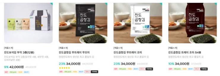 | 진도 곱창김 무트레이 | 무조미 최고 품질 햇김 | 34,000원 (할인가 기준) |