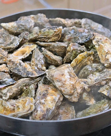 - 1. 굴 손질: 굴은 소금물에 가볍게 흔들어 씻은 뒤 체에 밭쳐 물기를 완전히 제거합니다.
