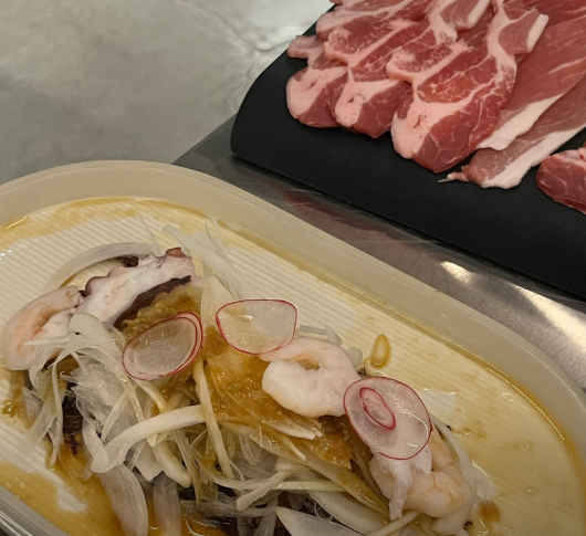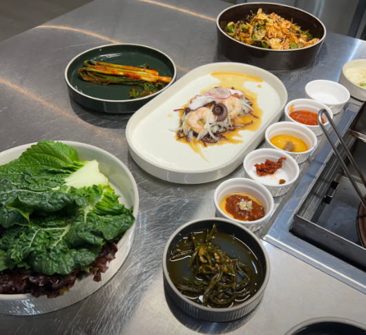 로스로스에서는 부위별로 세분화된 슬라이스 고기를 맛볼 수 있습니다. 가장 인기 있는 메뉴는 단연 송파 돼지 삼겹 슬라이스입니다. 삼겹살 부위 특유의 고소함을 얇은 두께로 살려내어 느끼하지 않게 즐길 수 있는 것이 특징입니다. 또한 고숙성을 거쳐 더 깊은 풍미를 내는 목살과 어디서도 맛보기 힘든 레그 슬라이스 역시 이곳의 별미입니다. 송파 돼지 삼겹 슬라이스와 함께 곁들이는 다양한 찬거리들 또한 고기의 맛을 한층 살려줍니다.