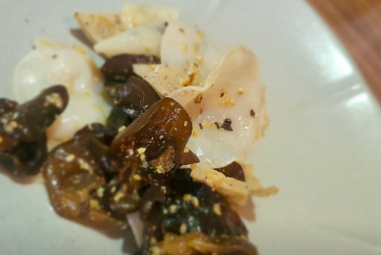 - 재료: 건표고버섯 5개, 무 300g, 다시마 육수 2컵, 통깨 약간