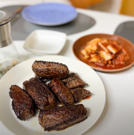 - 고기 손질: 고기의 핏물을 키친타월로 살짝 닦아낸 뒤 먹기 좋은 크기로 썹니다. 용인 탈북 정육사처럼 고기 결에 수직으로 칼집을 살짝 내면 양념이 더 잘 배고 식감이 부드러워집니다.