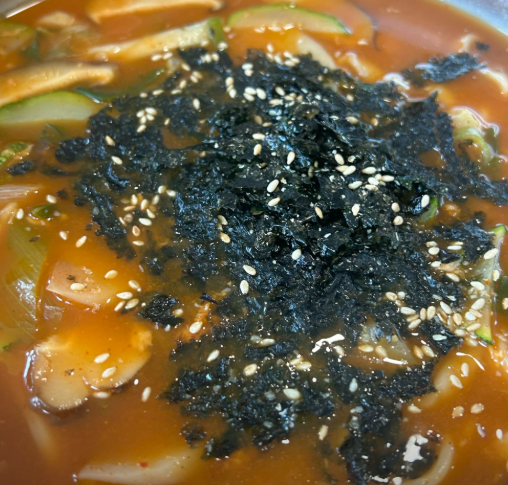 - 4. 뜨거운 국물 위에 모차렐라 치즈를 듬뿍 뿌리고 잔열로 녹여주면 피장파장 장칼국수 풍미를 즐길 수 있습니다.