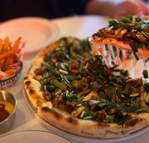 - 재료: 시판용 피자 도우(또는 또띠아), 모차렐라 치즈, 자숙 꼬막, 부추, 양념장(간장, 고춧가루, 다진 마늘, 참기름).