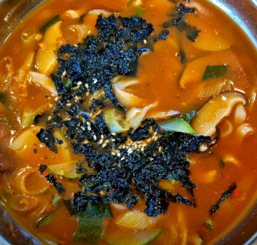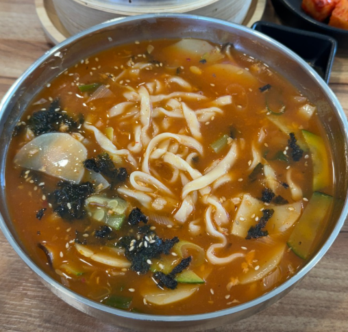 - 재료: 칼국수 면, 된장 1큰술, 고추장 2큰술, 감자, 호박, 모차렐라 치즈, 페퍼로니(선택).