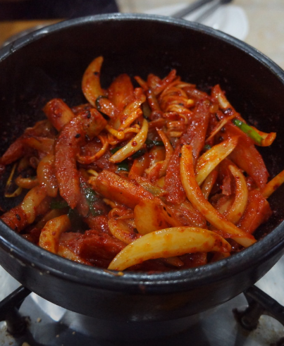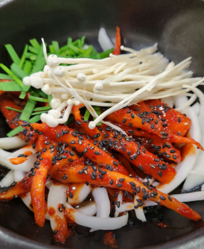 • 4. 팬에 기름을 두르고 양념한 더덕을 앞뒤로 노릇하게 구워냅니다.
