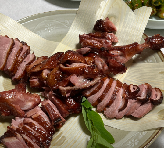 - 2. 그 위에 훈제 오리를 겹치지 않게 가지런히 올립니다.