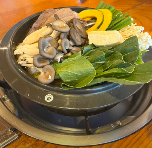 | 만두전골 (소: 2~3인분) | 34,000원 | 엄선한 야채와 새벽에 빚은 만두, 청정수 육수의 조화 |