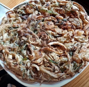 - 굽기: 팬에 기름을 넉넉히 두르고 반죽물을 얇게 부은 뒤 재료를 올립니다. 뚜껑을 살짝 덮어 속까지 익힌 후 마지막에 센 불로 앞뒤를 바삭하게 구워내면 포천 이북식 만두전골, 해물파전 부럽지 않은 파전이 탄생합니다.