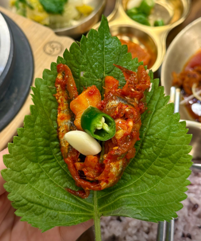 - 재료: 신선한 생물 멸치(또는 횟감용 생선) 200g, 미나리 한 줌, 양파 1/4개, 양배추 약간, 깻잎 5장
