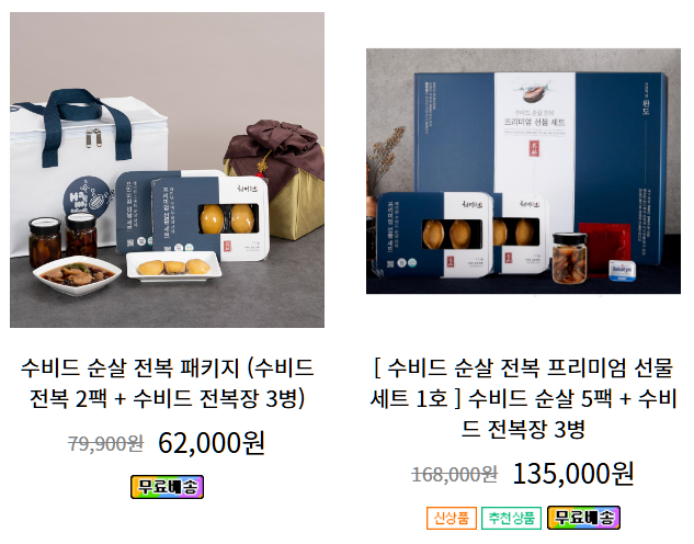 | 전복장 선물세트 | 가공완료 / 밑반찬용 | 50,000원 내외 |
