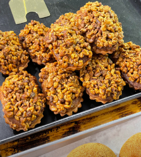 - 5. 2차 발효 및 굽기: 팬에 둥글게 배치하여 30분간 더 발효한 뒤, 180도로 예열된 오븐에서 15~20분간 노릇하게 굽습니다.