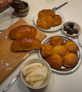 - 빵 반죽 재료: 강력분 250g, 설탕 30g, 소금 4g, 드라이이스트 5g, 우유 150ml, 무염버터 30g.
