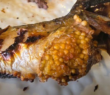- 도루묵 알이 단단하게 익고 국물이 자작해지면 대파와 고추를 넣어 마무리합니다.