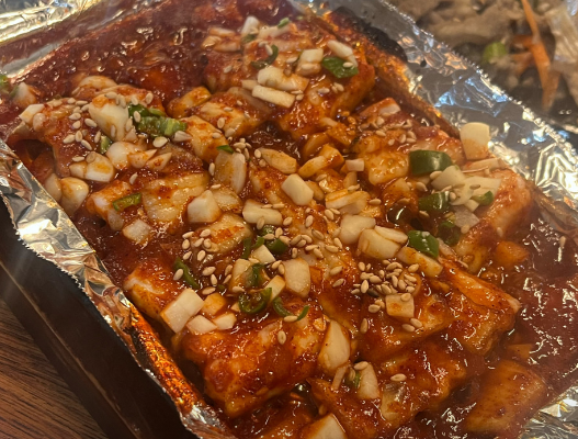 - 1. 문어(혹은 오징어)를 끓는 물에 소금을 약간 넣고 살짝 데친 뒤 찬물에 헹궈 물기를 빼고 한입 크기로 썹니다.