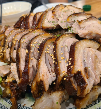 - 5. 완성: 따뜻하게 데운 족발 위에 소스를 듬뿍 뿌려주면 오산 오색시장 마늘족발 특유의 맛을 재현할 수 있습니다.