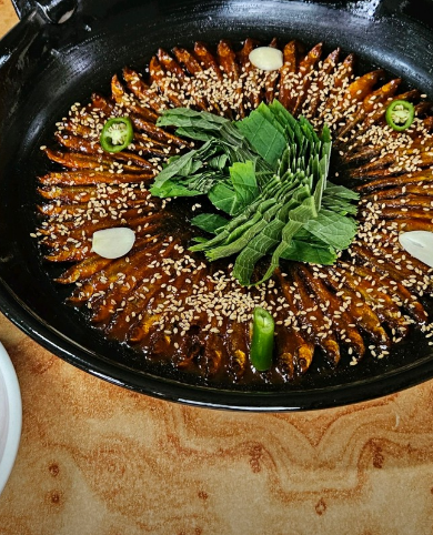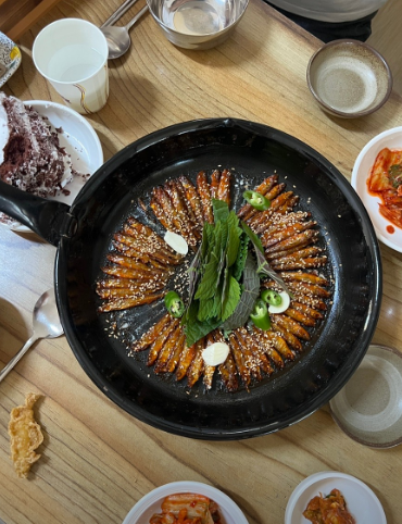 특히 도리뱅뱅이는 작은 민물고기를 팬에 동그랗게 둘러 튀기듯 구워낸 뒤 매콤달콤한 양념을 덧바른 요리로, 바삭한 식감이 일품입니다. 청산 생선국수, 도리뱅뱅이 조화는 담백한 국물과 바삭한 고소함이 만나 완벽한 균형을 이룹니다. 여기에 갓 튀겨낸 생선튀김을 곁들이면 옥천의 별미를 모두 맛보는 셈이 됩니다.