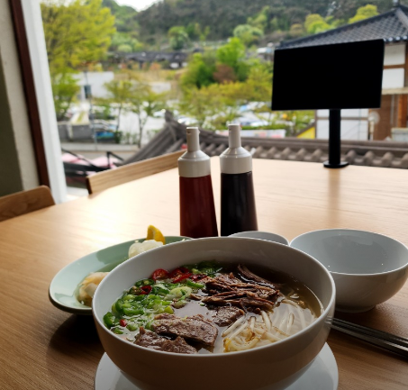 또 다른 시그니처 메뉴인 왕갈비쌀국수는 이름 그대로 압도적인 크기의 갈비가 통째로 들어가 있습니다. 광주 남한산성 소갈비수육, 왕갈비쌀국수 키워드의 핵심인 이 쌀국수는 단백질 보충을 원하는 대식가들에게 안성맞춤인 보양식입니다. 향신료에 거부감이 있는 분들도 편하게 드실 수 있도록 한우 양지로 낸 깔끔한 국물이 일품이며, 부드러운 면발과 갈비 살코기의 조화가 환상적입니다. 가성비를 중시한다면 한우 양지 쌀국수 또한 훌륭한 대안이 됩니다.