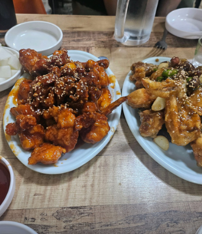 의정부 통닭 거리의 자존심이라 불리는 성원통닭은 마늘통닭으로 가장 잘 알려져 있습니다. 큰 닭을 조각내어 바삭하게 튀겨내고 그 위에 알싸한 생마늘을 곁들이는 것이 특징입니다. 후라이드를 주문하면 닭똥집과 염통, 마늘 튀김까지 서비스로 제공되어 푸짐함을 더합니다. 신메뉴인 단짠반 후라이드반 세트도 최근 큰 인기를 끌고 있습니다.
