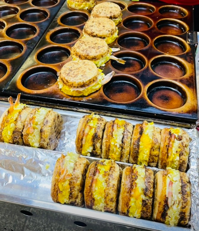 의정부 제일시장 지상 15호에 위치한 오미야끼는 일반적인 계란빵과는 차원이 다른 두툼하고 화려한 토핑의 달걀빵을 선보이는 곳입니다. 동판 위에서 정성스럽게 접어가며 만드는 모습은 지나가는 행인들의 발길을 멈추게 합니다. 베이컨, 문어, 새우 등 취향에 맞는 토핑을 골라 즐길 수 있으며, 한 개만 먹어도 든든한 간식으로 충분합니다.