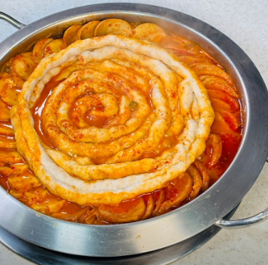 - 재료: 수제 소시지 2~3종, 스팸, 베이컨, 묵은지 한 줌, 대파, 양파, 사골 육수 500ml