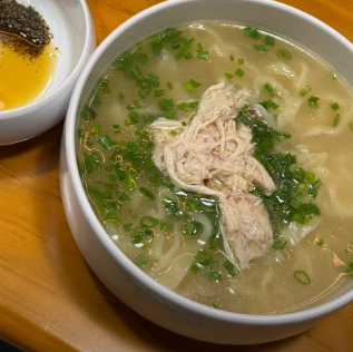- 완성하기: 그릇에 면과 국물을 담고, 미리 무쳐둔 닭고기 고명을 듬뿍 올린 뒤 송송 썬 대파를 뿌려 마무리합니다.