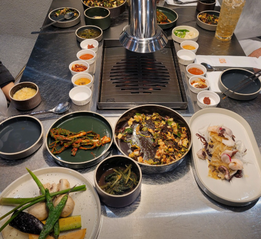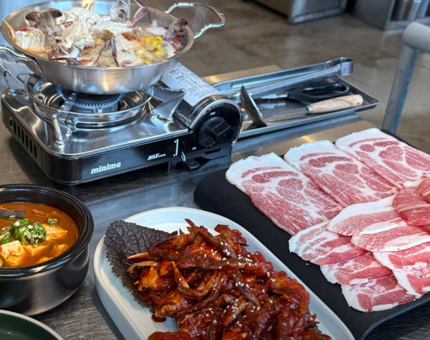 송파 돼지 삼겹 슬라이스를 주문하면 테이블 위 불판에서 직접 구워 먹는 재미가 쏠쏠합니다. 얇은 고기의 특성상 빨리 익기 때문에 끊김 없이 식사를 즐길 수 있다는 점이 송파 돼지 삼겹 슬라이스만의 장점입니다.