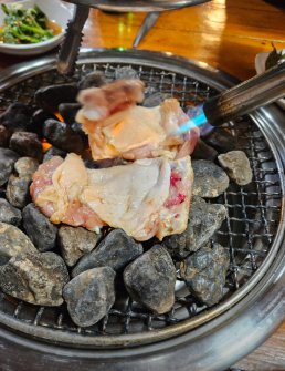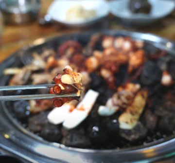강촌 인근에 위치한 윤스꼬는 춘천 먹거리의 혁신을 보여주는 곳입니다. 일반적인 철판 닭갈비가 아닌, 맥반석 위에서 구워 먹는 방식을 고수하여 기름기는 쏙 빠지고 육즙은 가득한 맛을 구현했습니다. 특히 이곳의 별미는 통통한 문어와 닭갈비를 함께 구워 먹는 세트 메뉴입니다. 맥반석의 열기로 익어가는 문어의 쫄깃함과 닭갈비의 부드러움이 만나 최고의 궁합을 자랑합니다. 숯불 향이 은은하게 밴 고품격 춘천의 맛을 느끼고 싶은 분들에게 강력 추천하는 맛집입니다.
