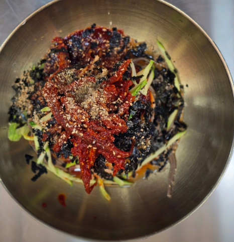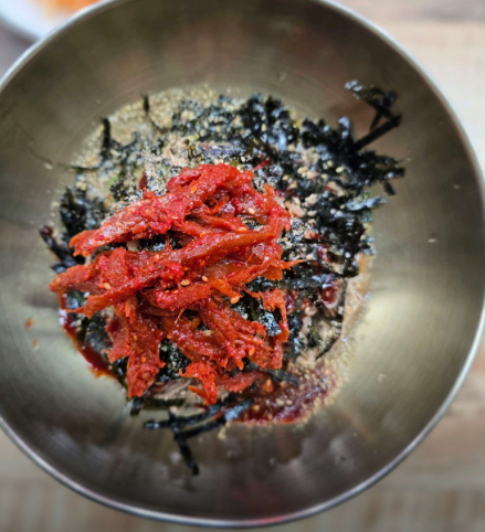 - 양념장: 고춧가루 3큰술, 간장 3큰술, 다진 마늘 1큰술, 올리고당 1큰술, 맛술 2큰술, 생강가루 약간.
