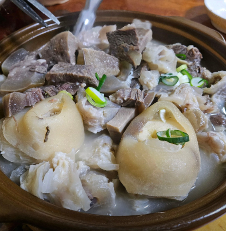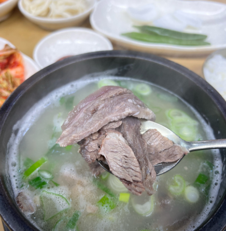 - 고기 넣기: 삶아진 소머리 고기 수육을 먹기 좋은 크기로 썰어 육수에 넣고 한소끔 끓입니다.