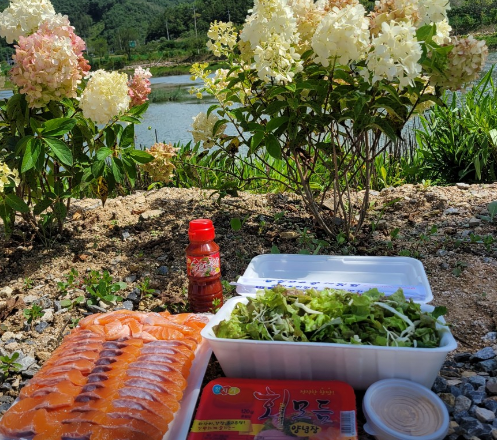 • 준비물: 신선한 송어회(또는 연어), 양배추, 상추, 깻잎, 당근, 쪽파.