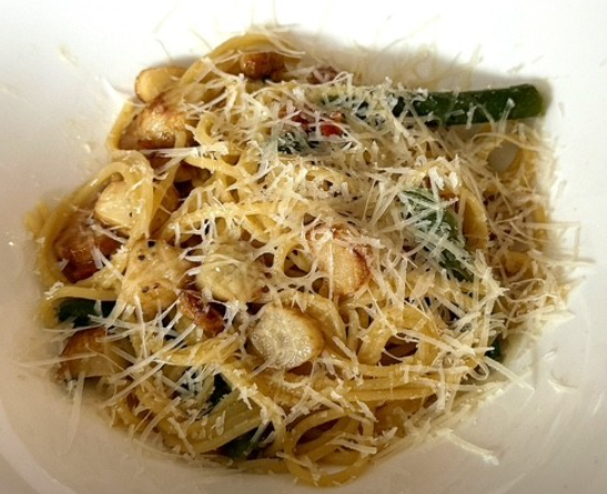 - 재료: 파스타 면(스파게티) 100g, 마늘 8~10알, 페페론치노 3~4개, 엑스트라 버진 올리브유 5큰술, 파마산 치즈 가루, 파슬리, 소금, 면수 반 컵.