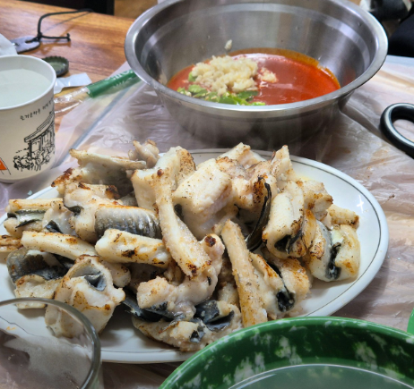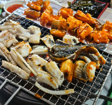 기름이 빠지도록 자주 뒤집어 주며 굽고, 마지막에 간장과 마늘, 생강을 섞은 소스를 살짝 발라주면 담백한 장어구이를 완성할 수 있습니다. 해산물은 소금물에 살짝 데쳐 초장이나 참기름에 찍어 먹으면 부산 장어구이, 해산물의 느낌을 집에서도 충분히 즐길 수 있습니다.